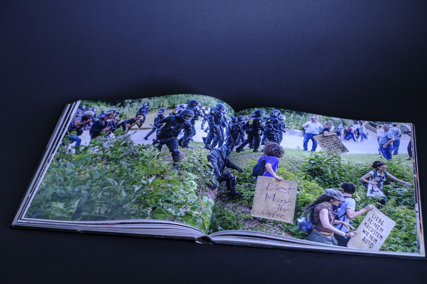 Analog und digital, schwarz-weiß und in Farbe, mal mitten im Getümmel, mal mit etwas Abstand. Sechs FotografInnen zeigen in diesem Fotoband Motive einer eindrucksreichen G20-Protestwoche 2017 in Hamburg. Mit Interviews von Chris Grodotzki (Fotograf), Gudrun Schoppe & Rita Kohel (1000 Gestalten), Matthias Bartke (SPD), Gwen Wayne (Alles Allen), Holger Burner (Rapper), Halil Simsek (G20 entern), Jan van Aken (Die Linke), Guido Camillo (Demonstrant), Katharina Fegebank (Die Grünen), Nico Berg (Block G20), Jeanine Weigel (DGB Nord), Timo Zill (Polizei Hamburg), Oliver von Dobrowolski (PolizeiGrün e.V.) und einem Geleitwort von Martin Dieckmann (dju in ver.di). GudbergNerger Verlag, Seitenzahl: 238 Seiten, ISBN-10: 3945772443