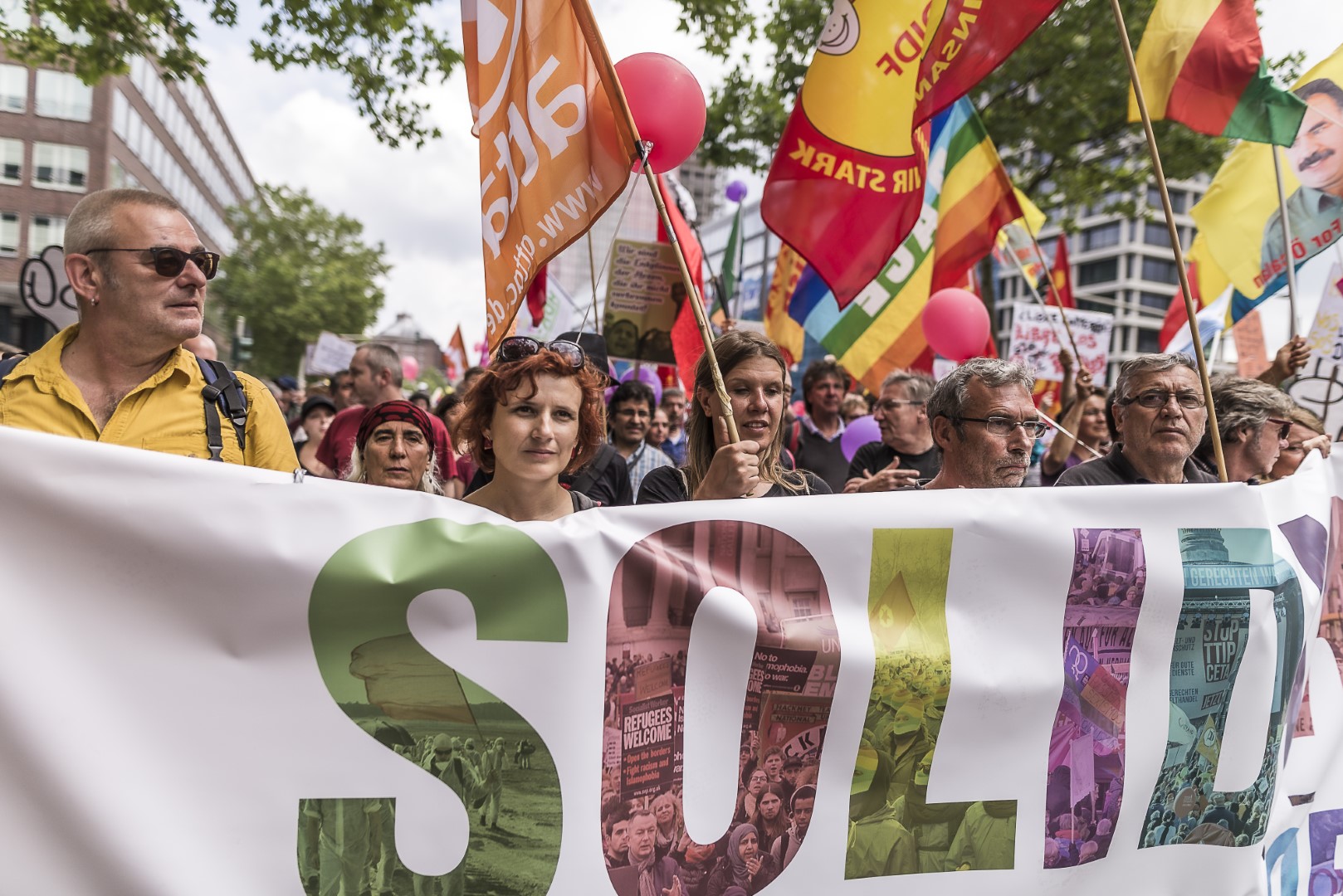 GERMANY, HAMBURG – Auf der Großdemonstration “Solidarität statt G20” mit ca. 100.000 Teilnehmern. +Mehr Material auf Anfrage möglich+ Vom 07.07-08.07.2017 fand der G20-Gipfel in Hamburg statt. Unter massiven Polizeiaufgebot trafen sich die Staats- und Regierungschefs der wichtigsten Industrie- und Schwellenländer. Über den gesamten Zeitraum und die Tage davor wurden hunderte verschiedenartige Protestaktionen und Demonstrationen gegen die Politik der G20 veranstaltet. Meist außerhalb davon begingen verschiedene Akteure, darunter Linksextremisten, Sachbeschädigungen, Plünderungen und Angriffe auf Polizeibeamte. Bei Ausschreitungen und Polizeiübergriffen wurden hunderte Personen verletzt.